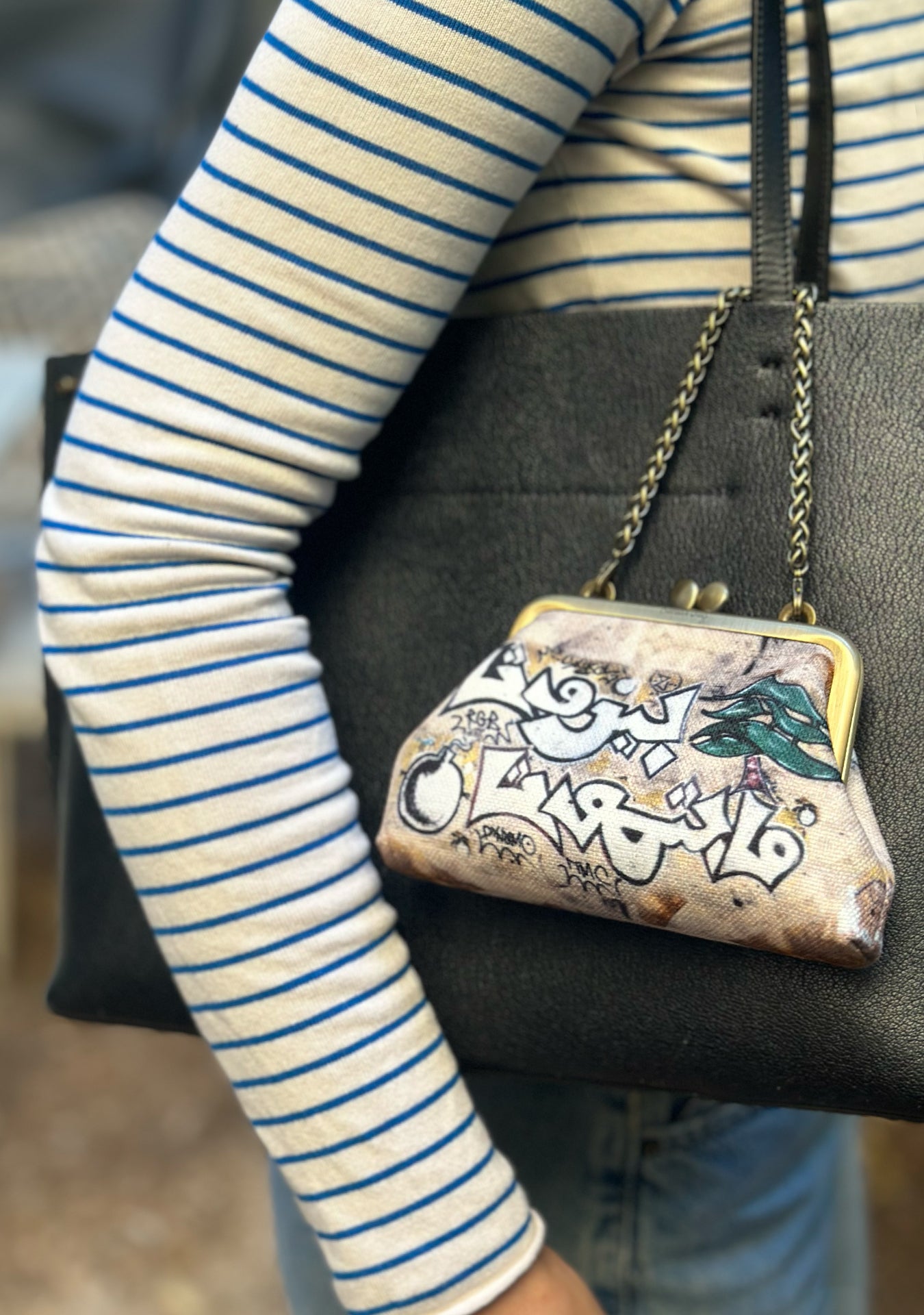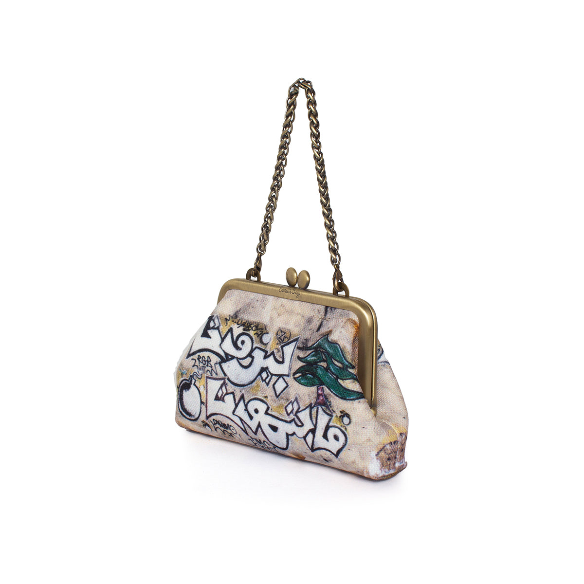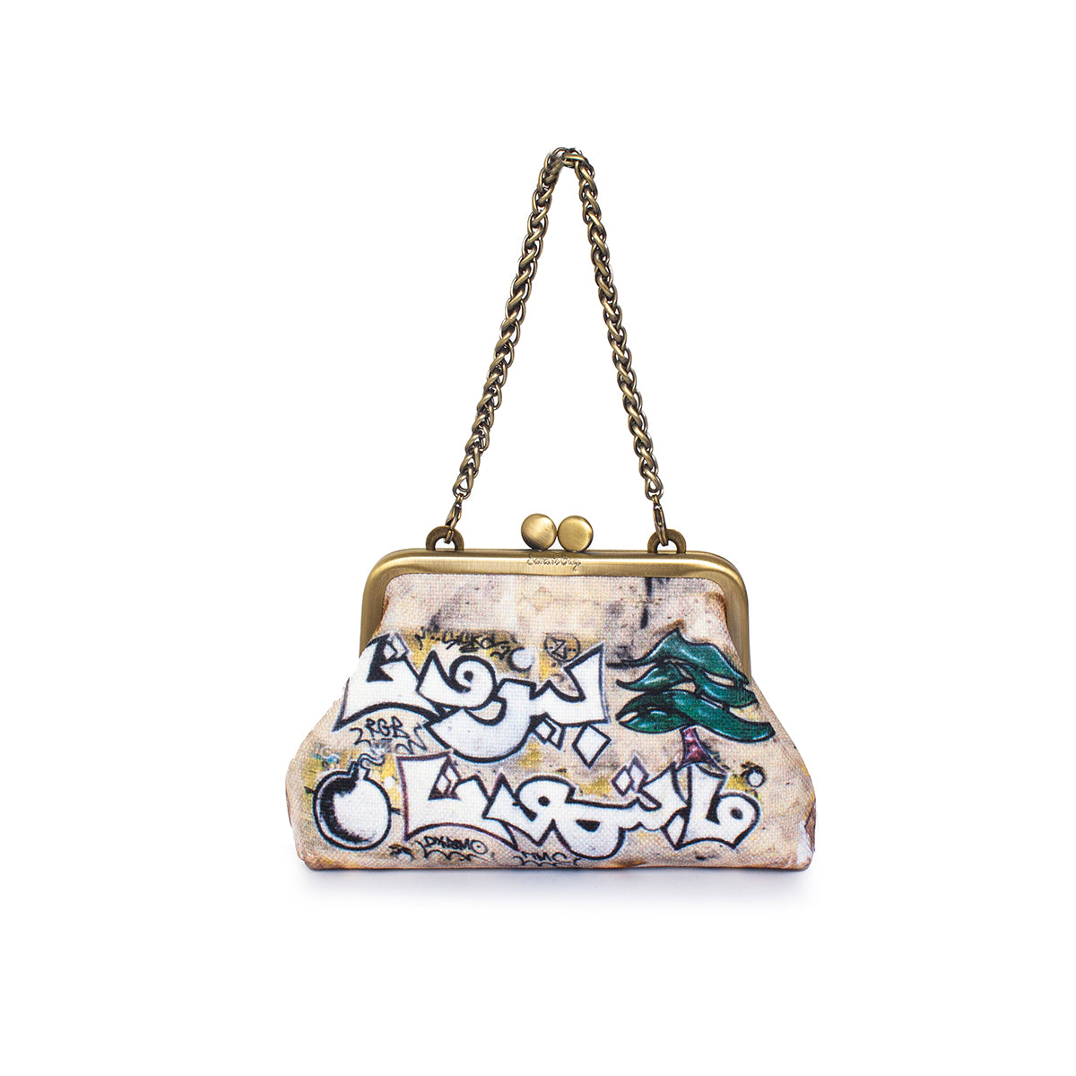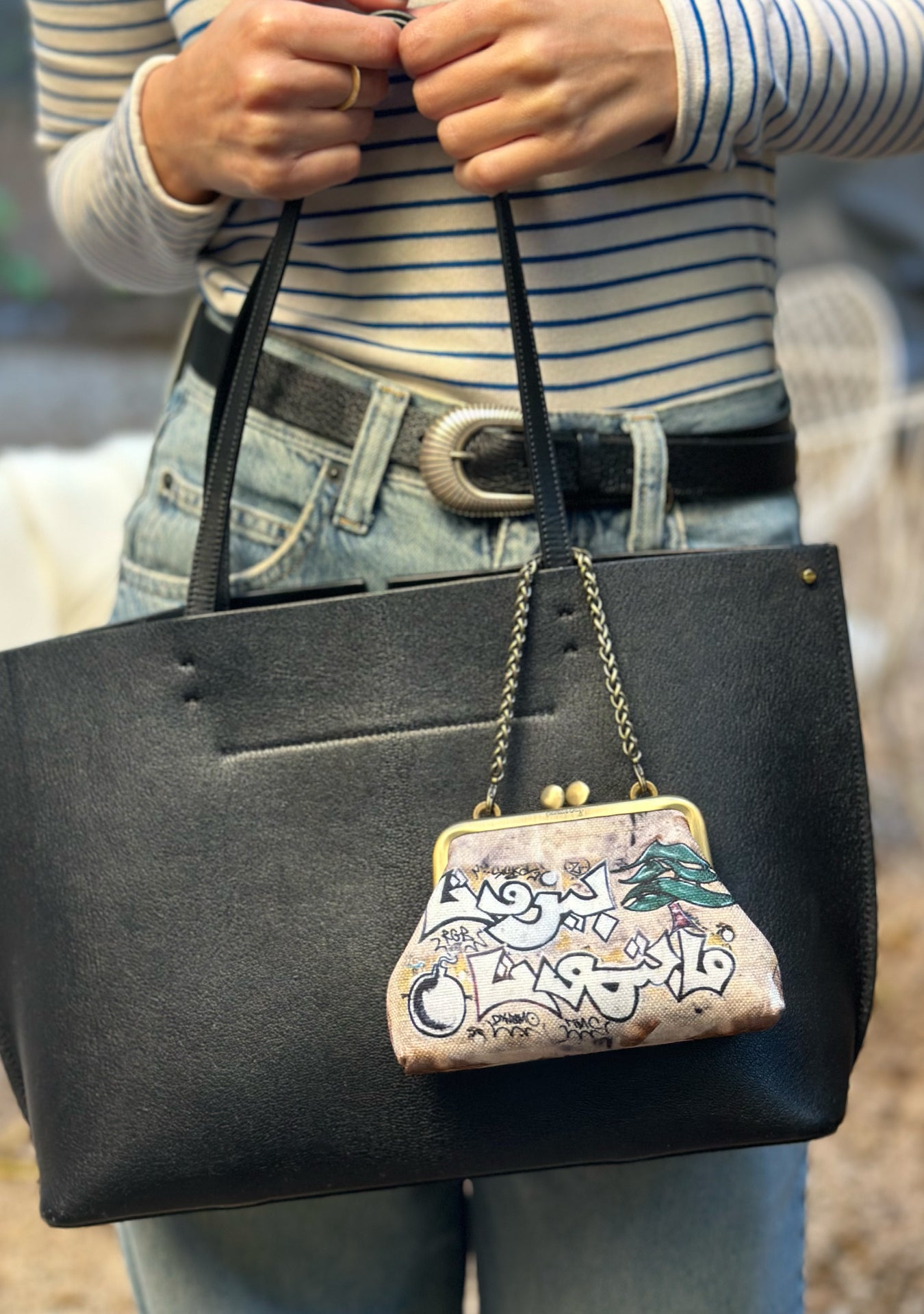 A miniature tribute to Beirut's resilience, this bag charm by Sarah's Bag features the iconic "Beirut Will Never Die" graffiti by artists Fish & Siska, now perfectly sized to adorn your favorite bag. Pair it with other charms to create a personalized, layered look that stands out.