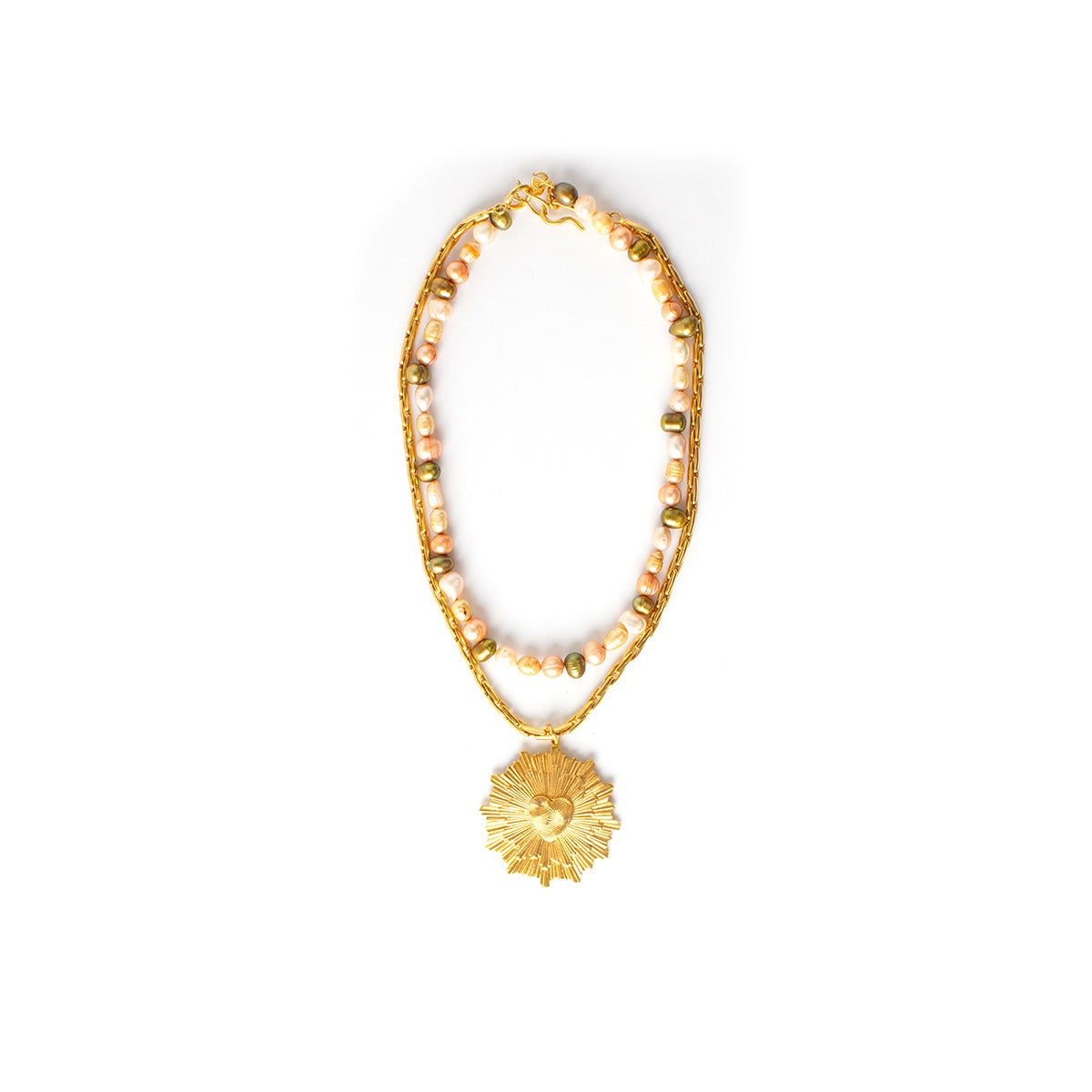 HEART RAYS GOLD NECKLACE WITH SUNRISE PEARLS