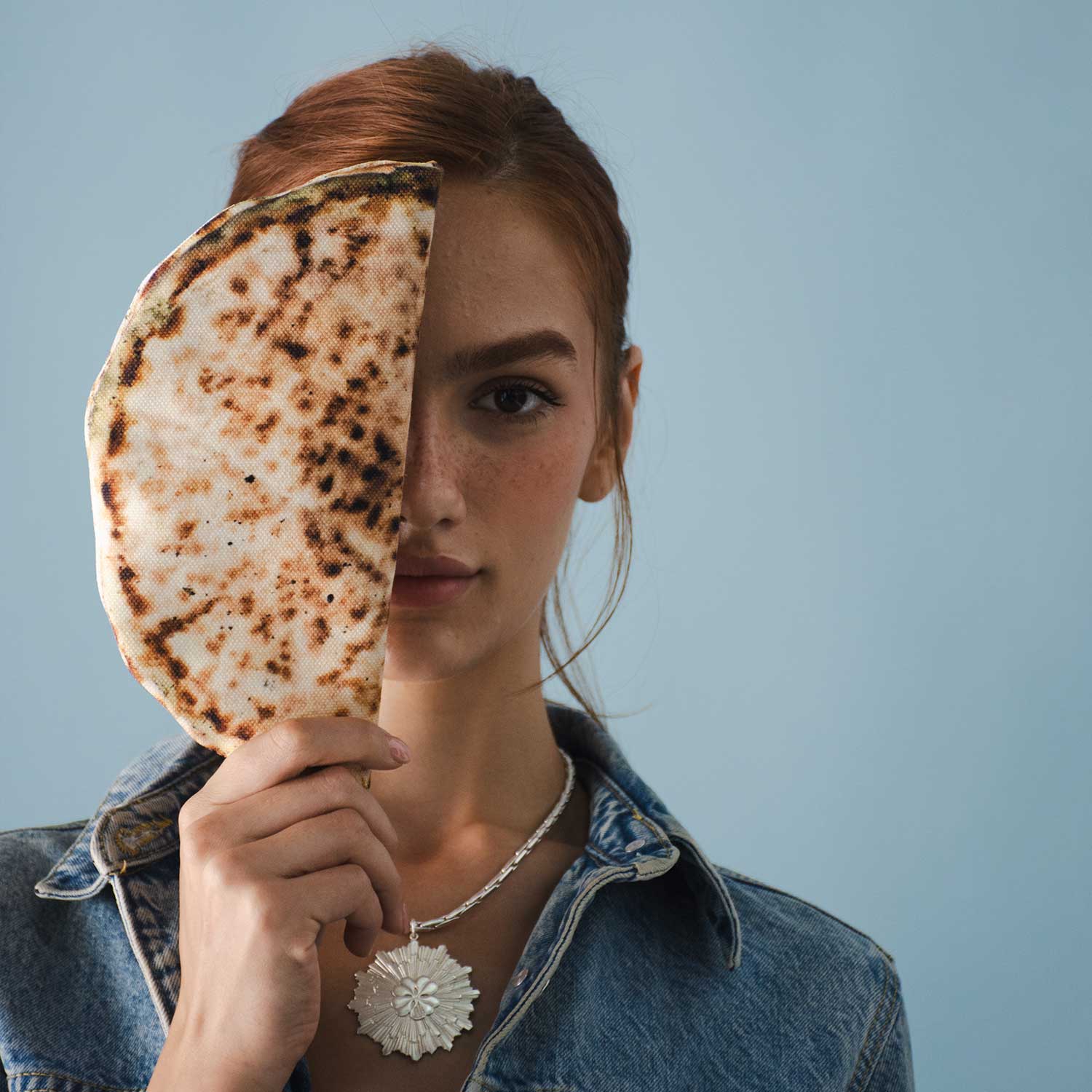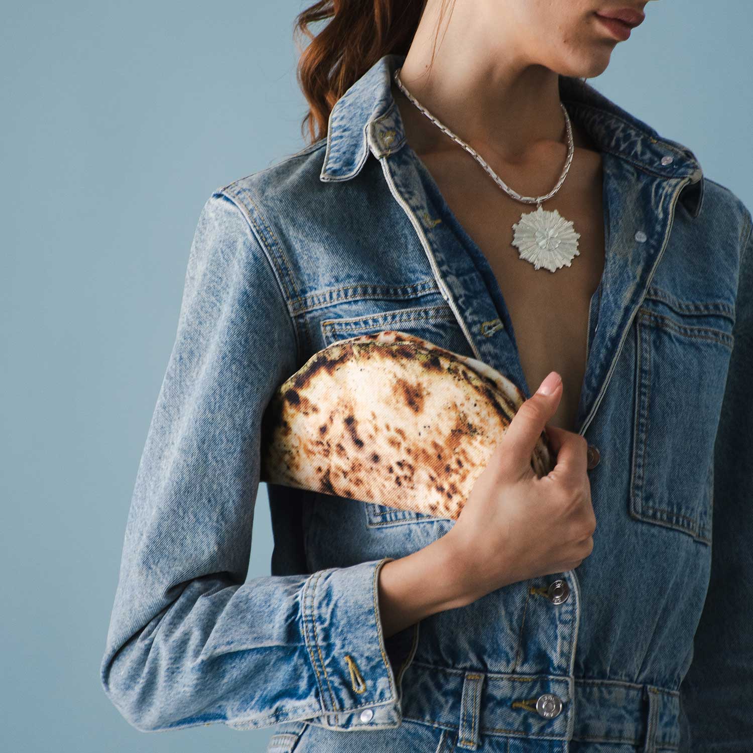 Celebrating an icon of Lebanese cuisine, the famous Manoosheh, this zippered clutch with its hyper-realistic print works wonders as a quirky statement bag or a great conversation starter!