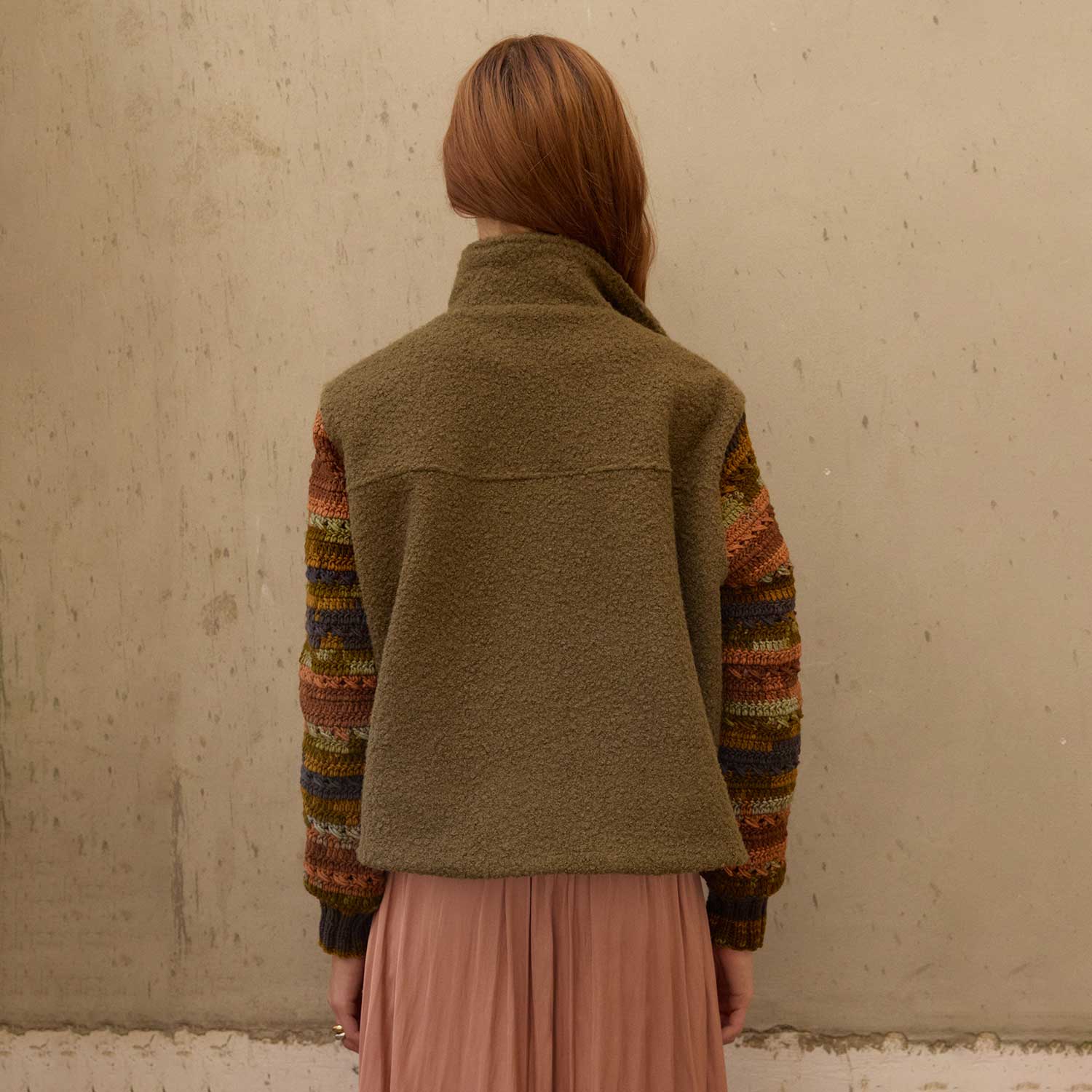 EARTH WOOL SLEEVES ON KHAKI BOUCLE YAS JACKET