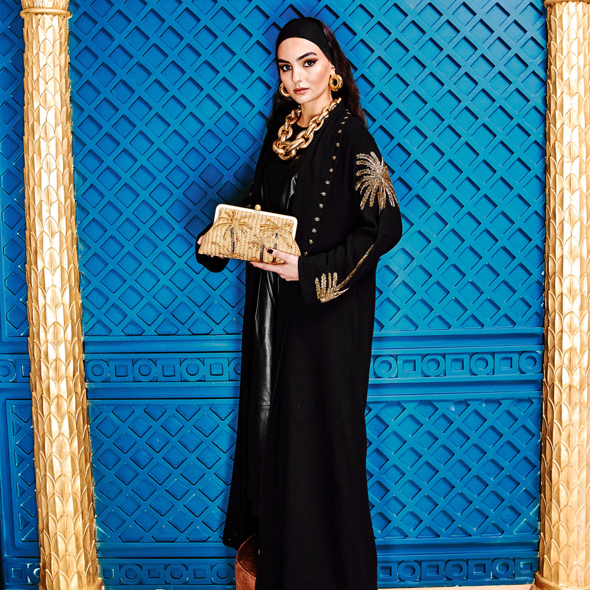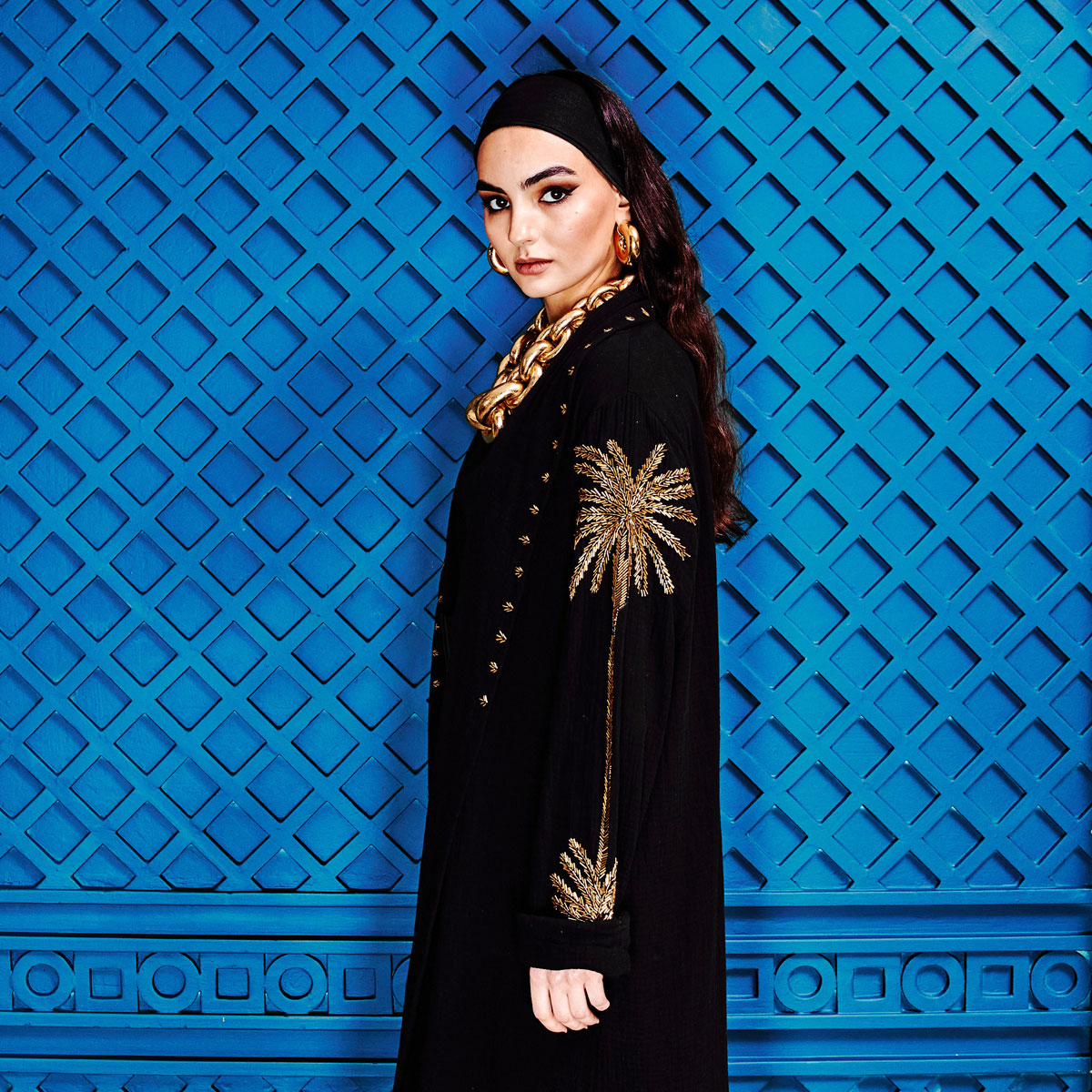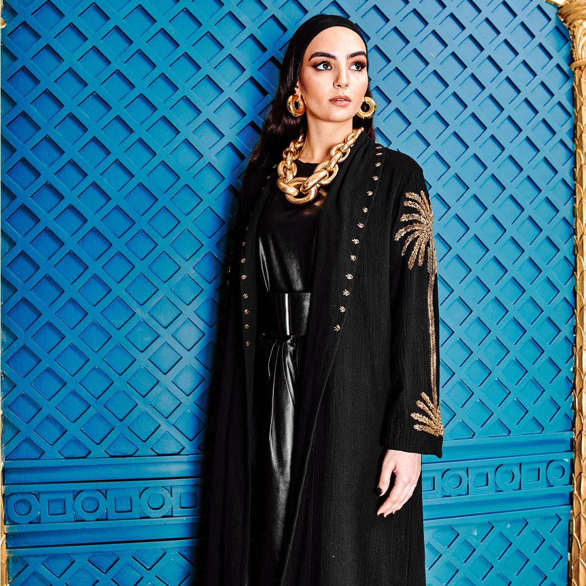 The Palm Gold Sleeve Black Cover Up is a striking addition to any wardrobe. Featuring exquisitely hand-beaded palm tree motifs flowing down the full sleeves, it exudes understated glamour. The sleek, full-length silhouette and softly tailored fit make it the ideal layering piece for special occasions. Style it over your favorite Sarah's Bag dress or a chic evening edit.