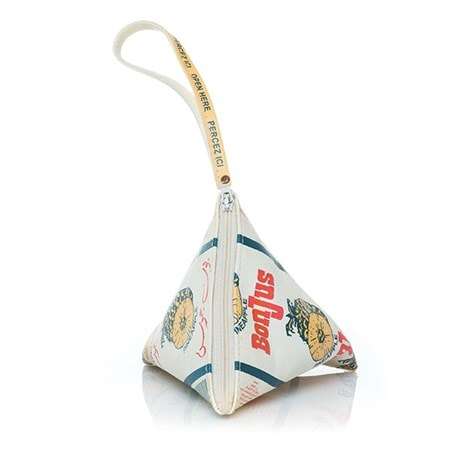 We took a sweet trip down memory lane and indulged our childhood nostalgia by re-creating triangle-shaped Bonjus cartons into zippered purses with hyper-realistic prints. You can slip it on to your hand as a playful statement bag or simply a great conversation starter!