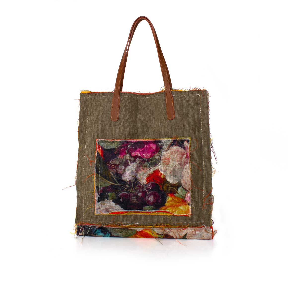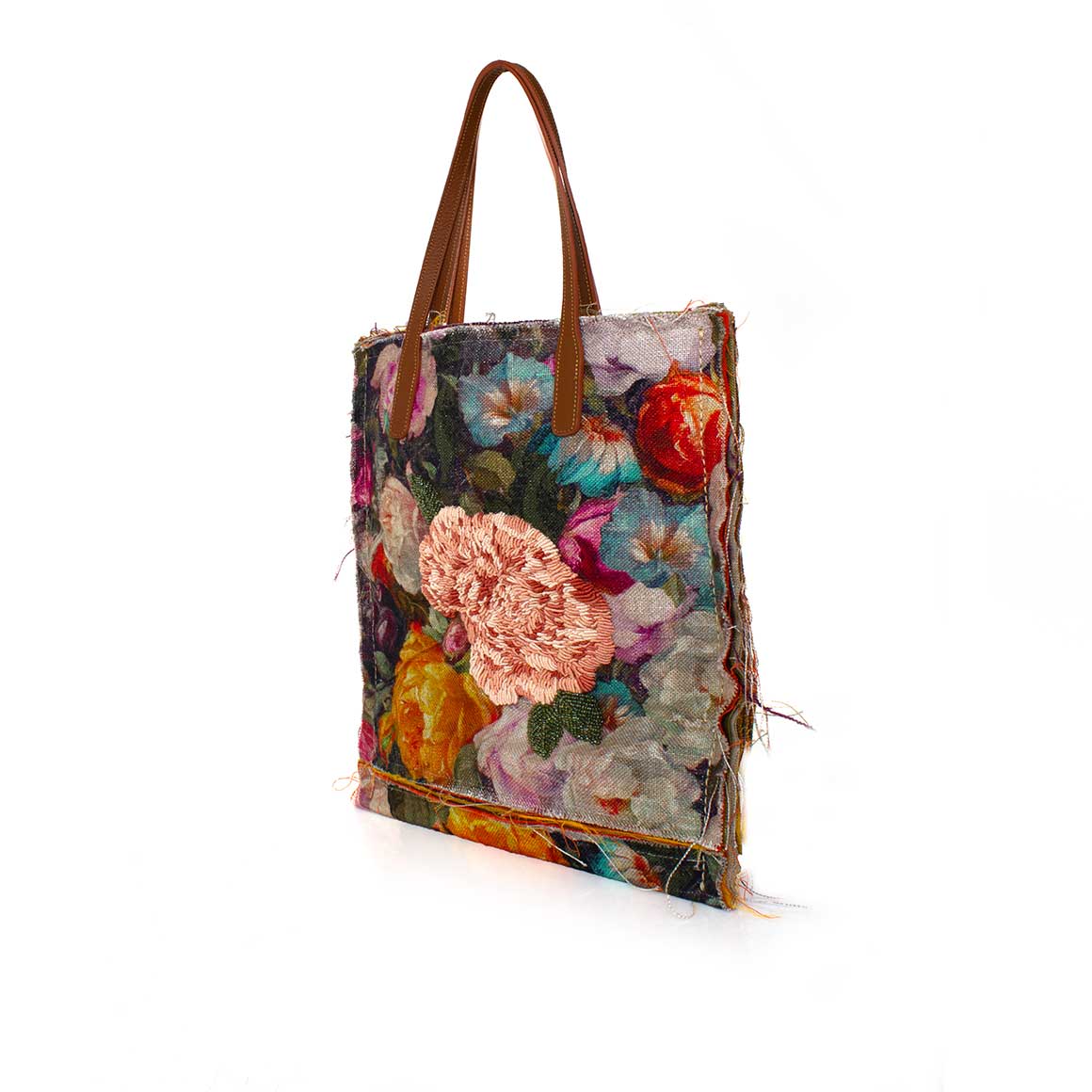 The Rose Garden Layered Tote is a bold carryall from The Grounded Collection, showcasing a richly textured patchwork of florals layered with raw edges for a modern, artisanal feel. Finished with leather handles, this roomy tote is designed for everyday use, balancing functionality with craft-focused design.