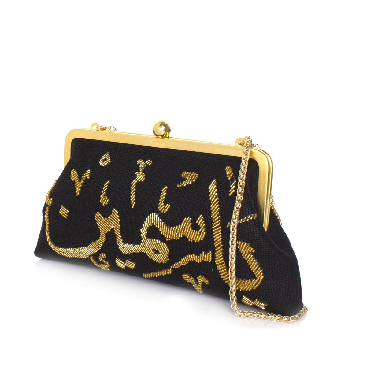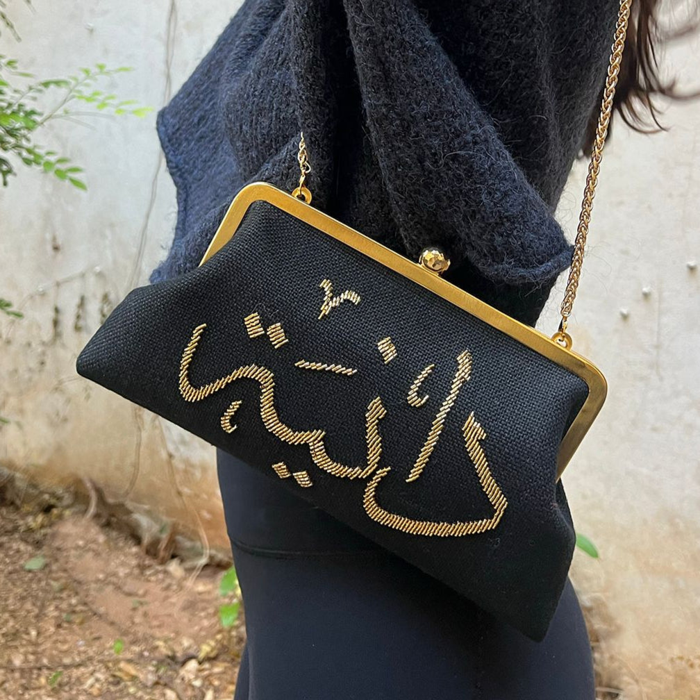 A Customized bag isn't just an accessory; it's a heartfelt token of love and appreciation, symbolizing a cherished bond. Gift a personalized treasure with the name adorned in elegant Arabic calligraphy, meticulously crafted with gold glass beads on a classic black canvas. This special piece not only celebrates the person your gifting but also showcases the beauty of Arabic calligraphy, making it an artful and thoughtful gift.