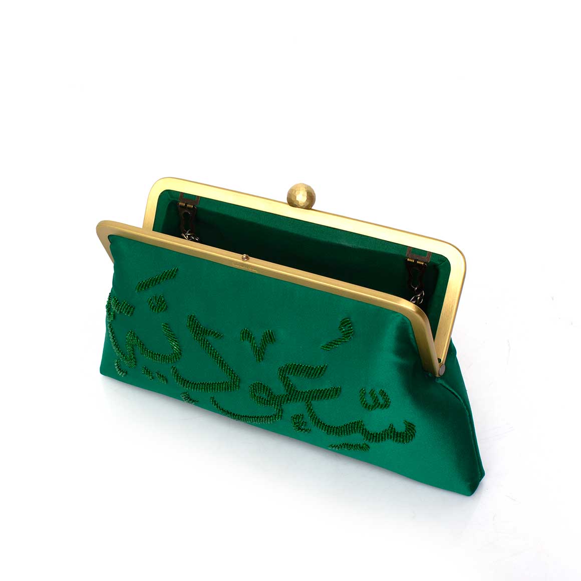 SAOUDIYAH GREEN ON GREEN SATIN CLASSIC BAG