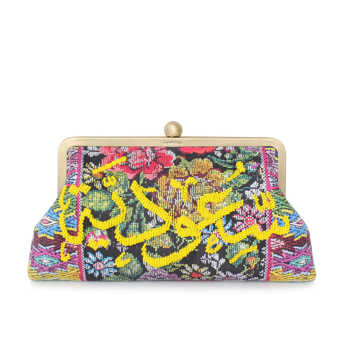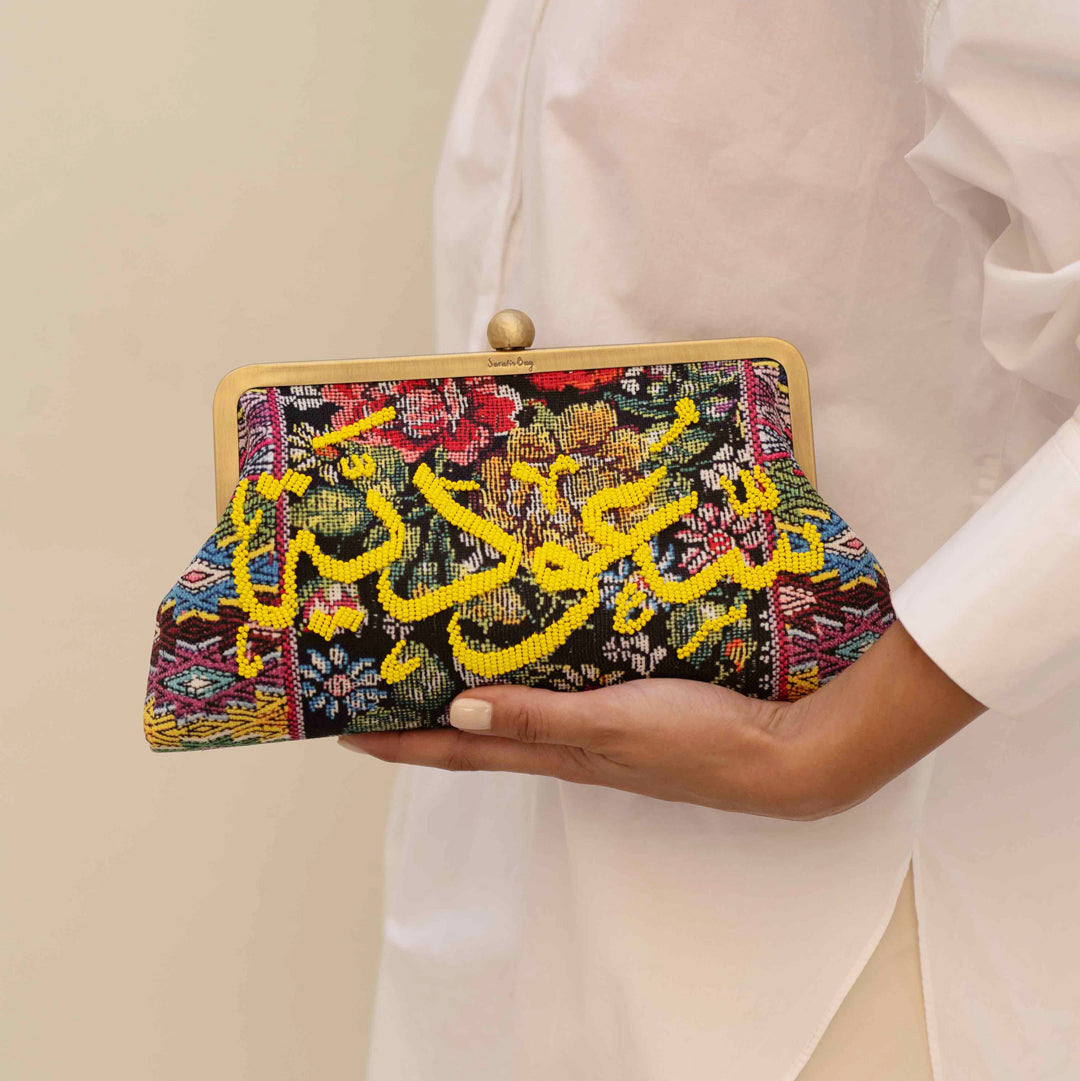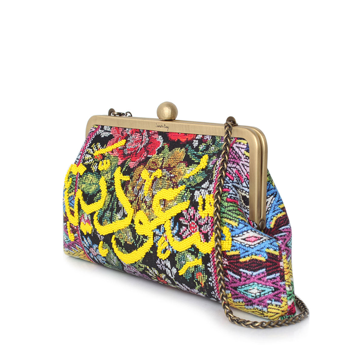 The Saoudiyah Yellow on Mexican Floral Classic Bag is a vibrant expression of elegance and charm. Crafted from a lively floral design, this exquisite bag features the word "Saoudiyah" (سعودية) intricately hand-embroidered in delicate Arabic calligraphy. Blending traditional craftsmanship with a fresh, modern aesthetic, the Yellow Saoudiyah on Floral Classic is a versatile accessory, ideal for adding a touch of grace to any occasion.
