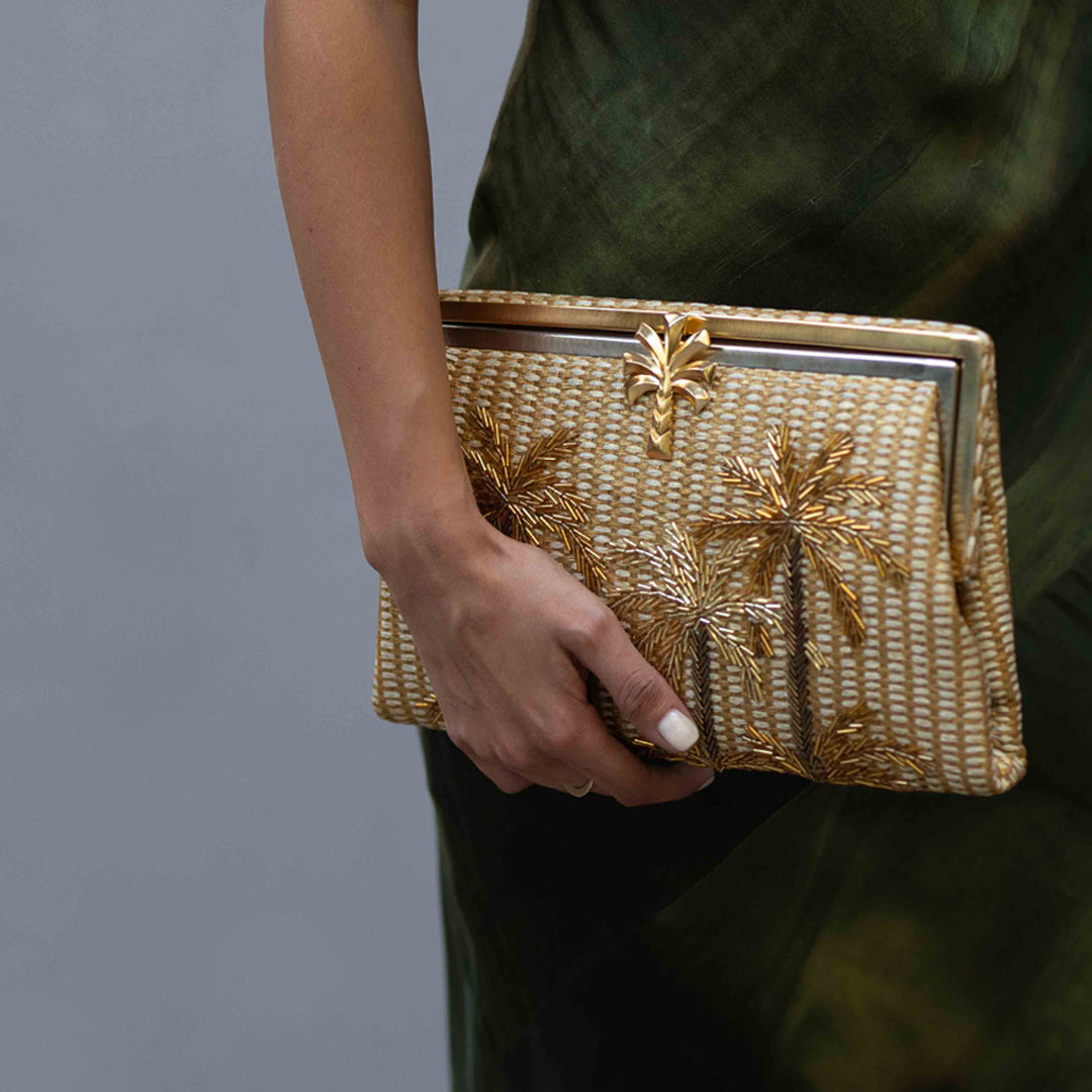 GOLDEN OASIS GOLD STRAW GRACE CLUTCH