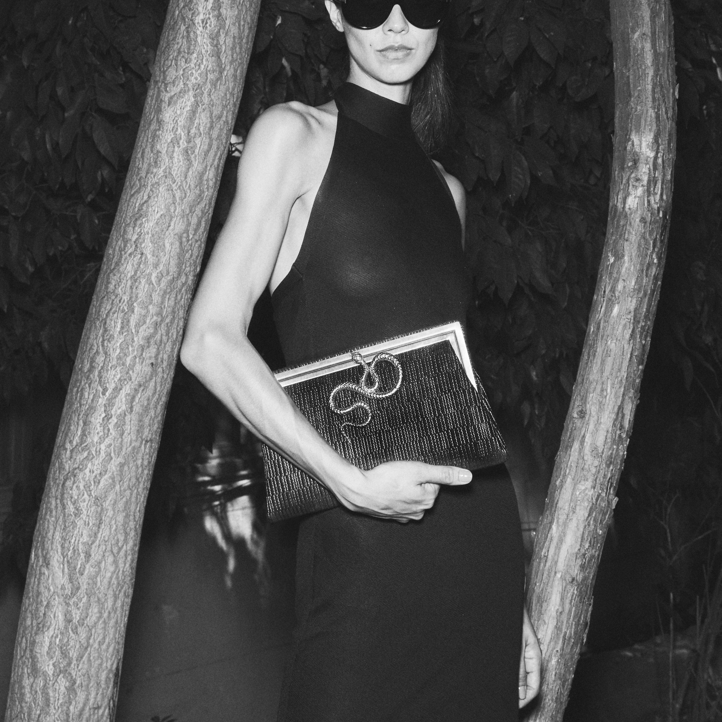 SERPENT ON BLACK WEAVE GRACE CLUTCH