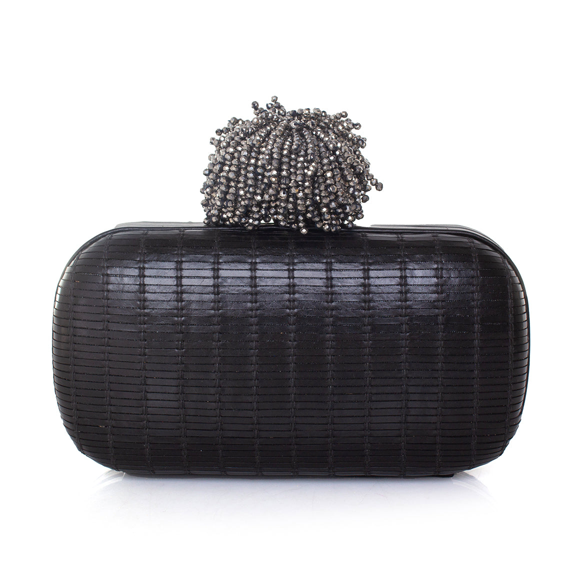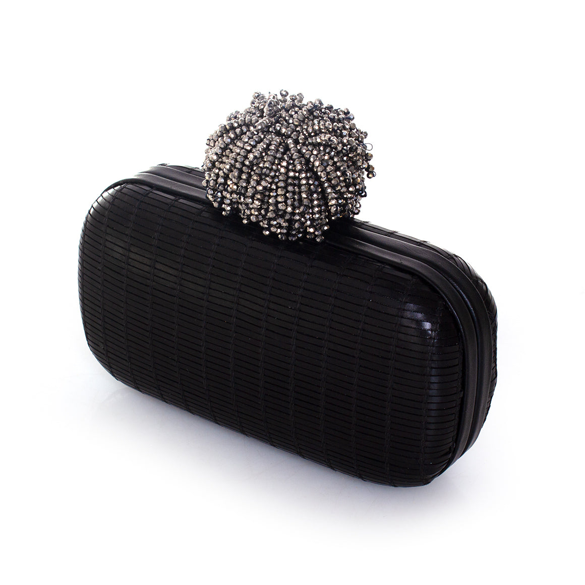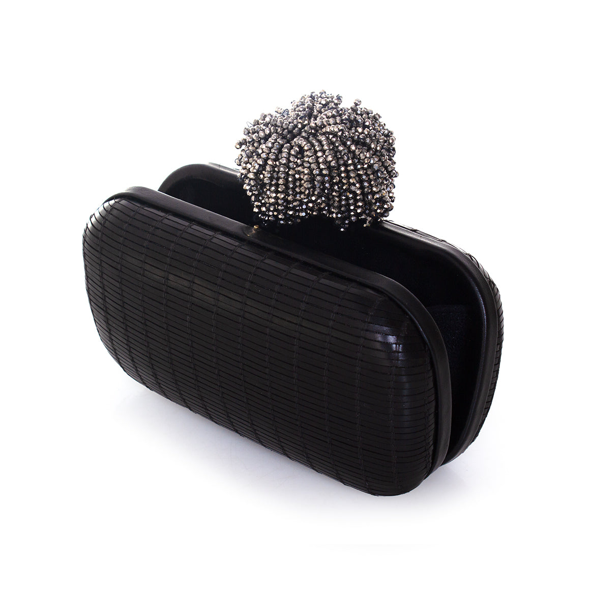 DHALIA CRYSTAL ON BLACK LEATHER BOX CLUTCH