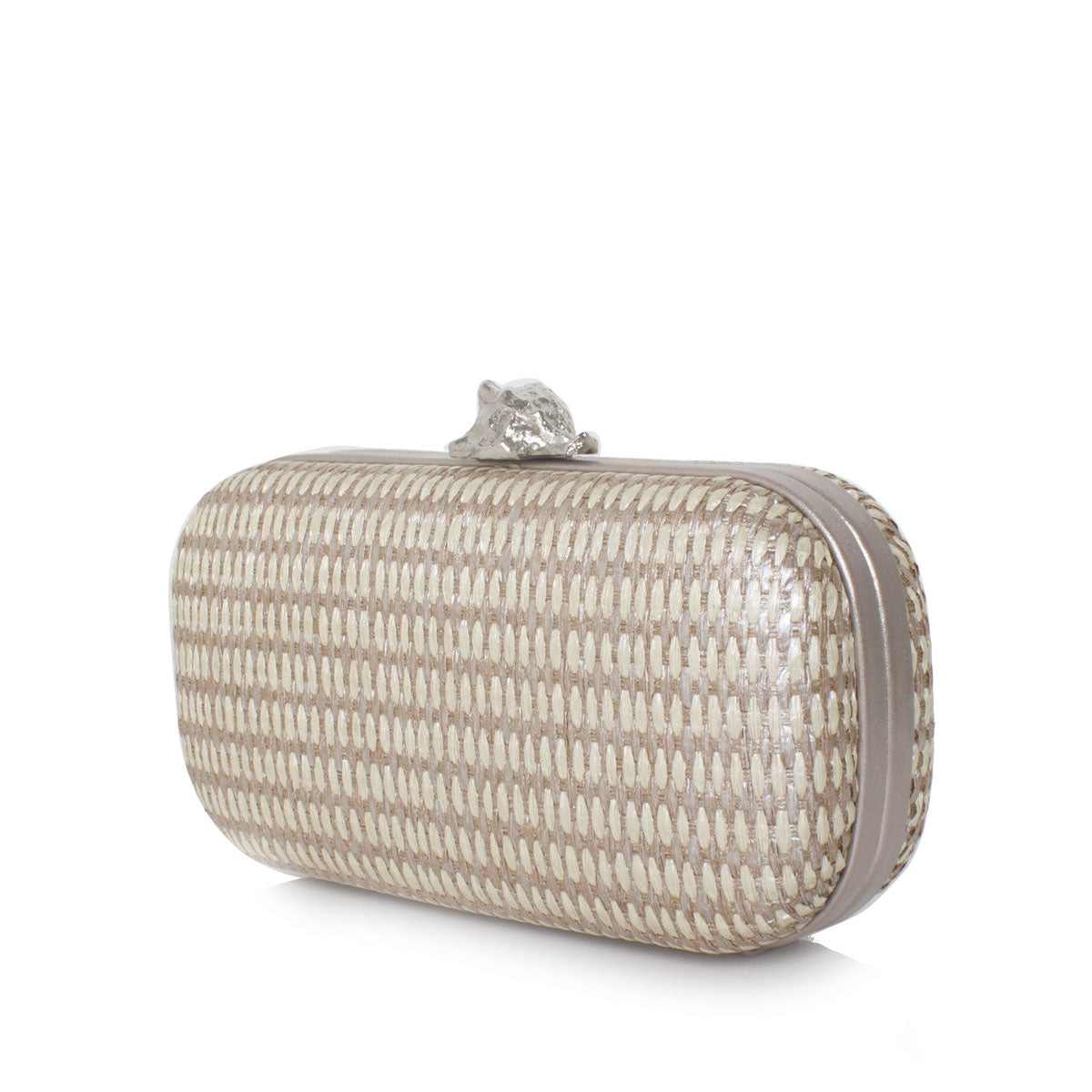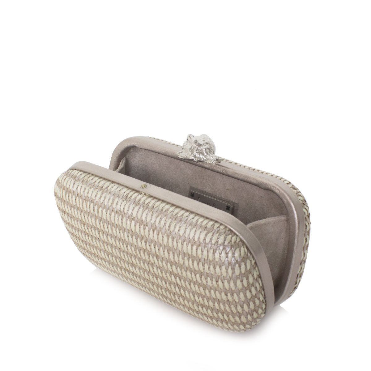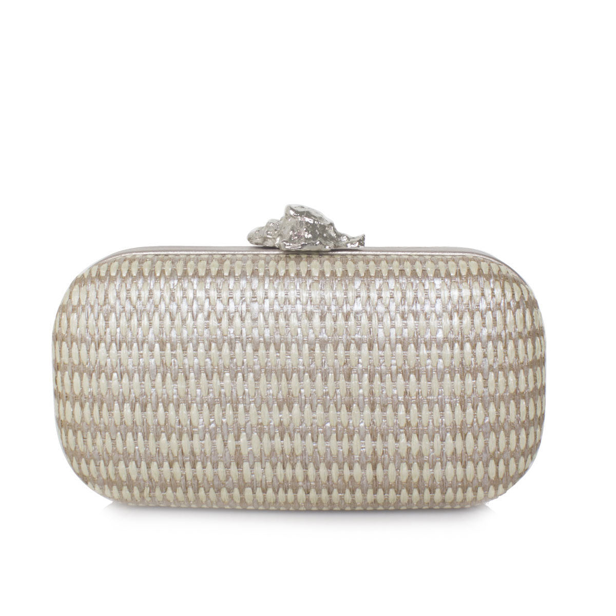The Murex Gold Straw Box minaudière pays homage to the Mediterranean’s legendary treasure: the murex shell, a symbol of ancient royalty and sophistication. This designer minaudière showcases a glistening, woven straw body and a striking, gold-toned, shell-shaped clasp. Its sleek, compact form fits comfortably in hand while holding all your essentials. A versatile statement piece, this luxury clutch is the go-to accessory for adding a finishing flourish to any evening edit.