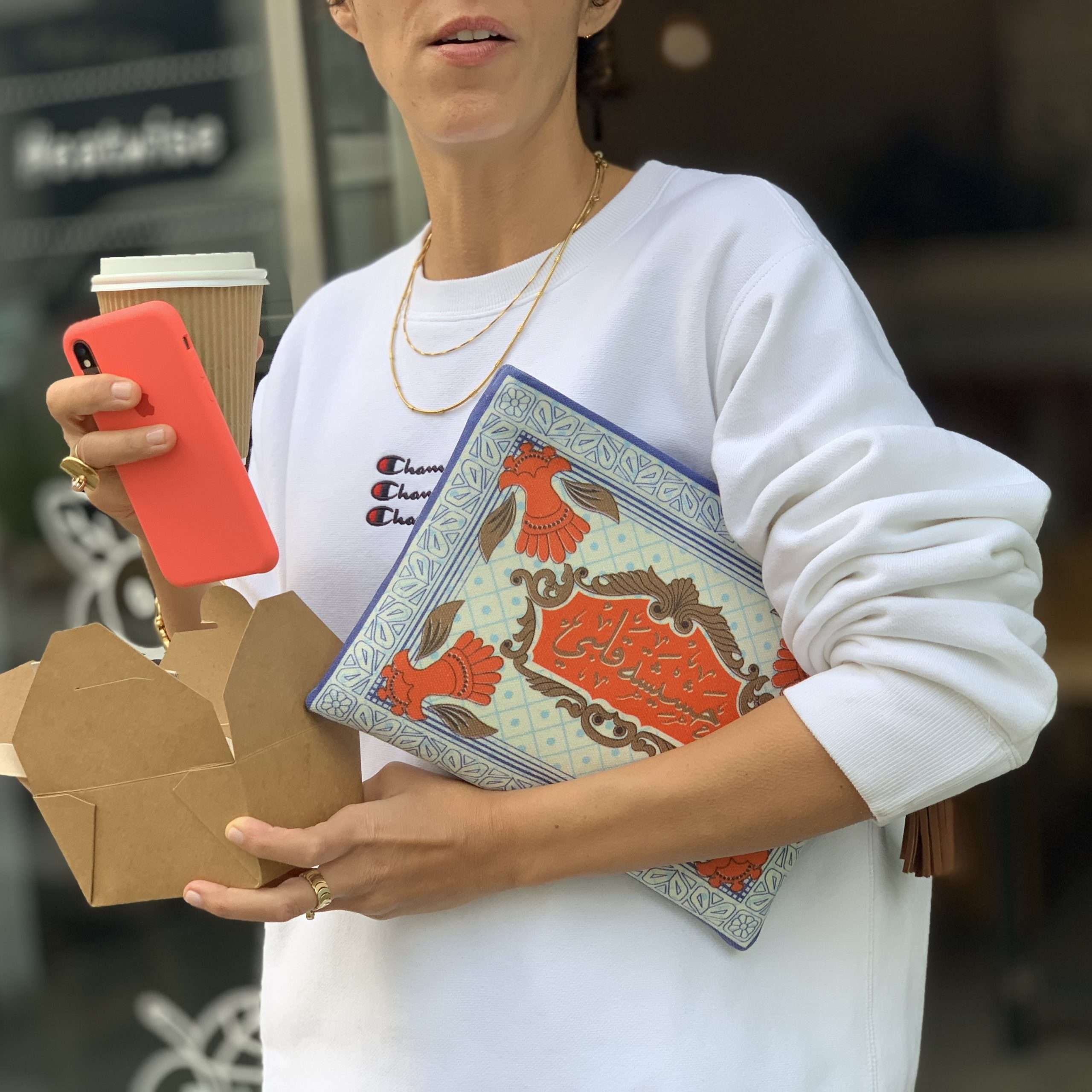 You’d be surprised how versatile this beautifully handcrafted clutch can be, working seamlessly with chic daytime jeans or a laidback evening look. It is printed with the delicate pattern found on the cover of ‘Damascus Paper’ packs, the almost 100-year-old tobacco paper that’s still a local favorite in the Middle East.