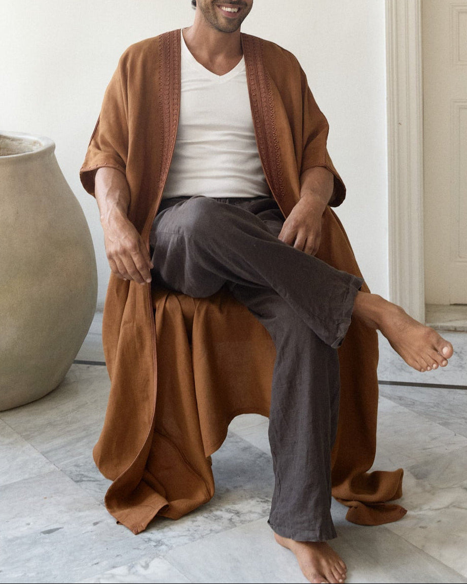 MEN’S BROWN LINEN ABAYA