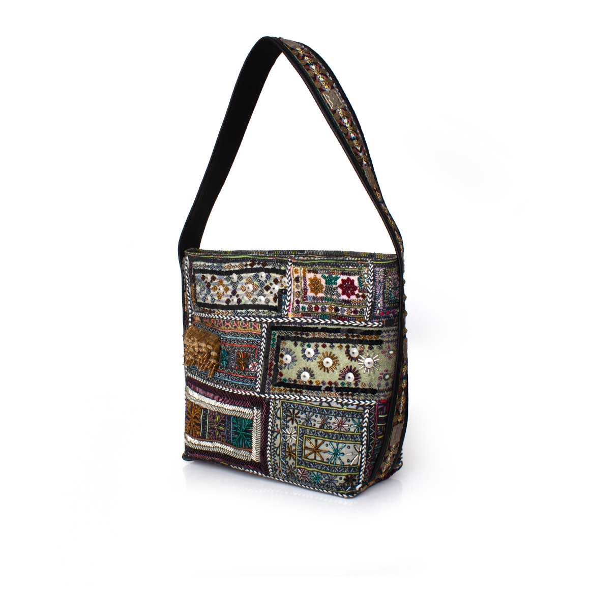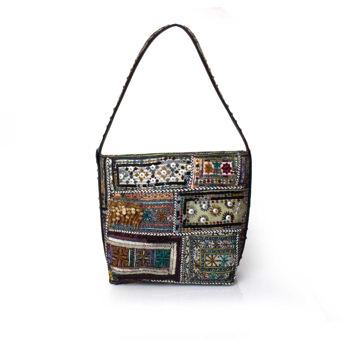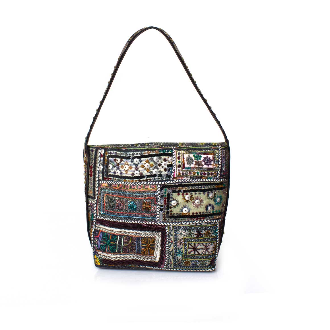 • Hand embellished with glass beads, threads, and sequins
