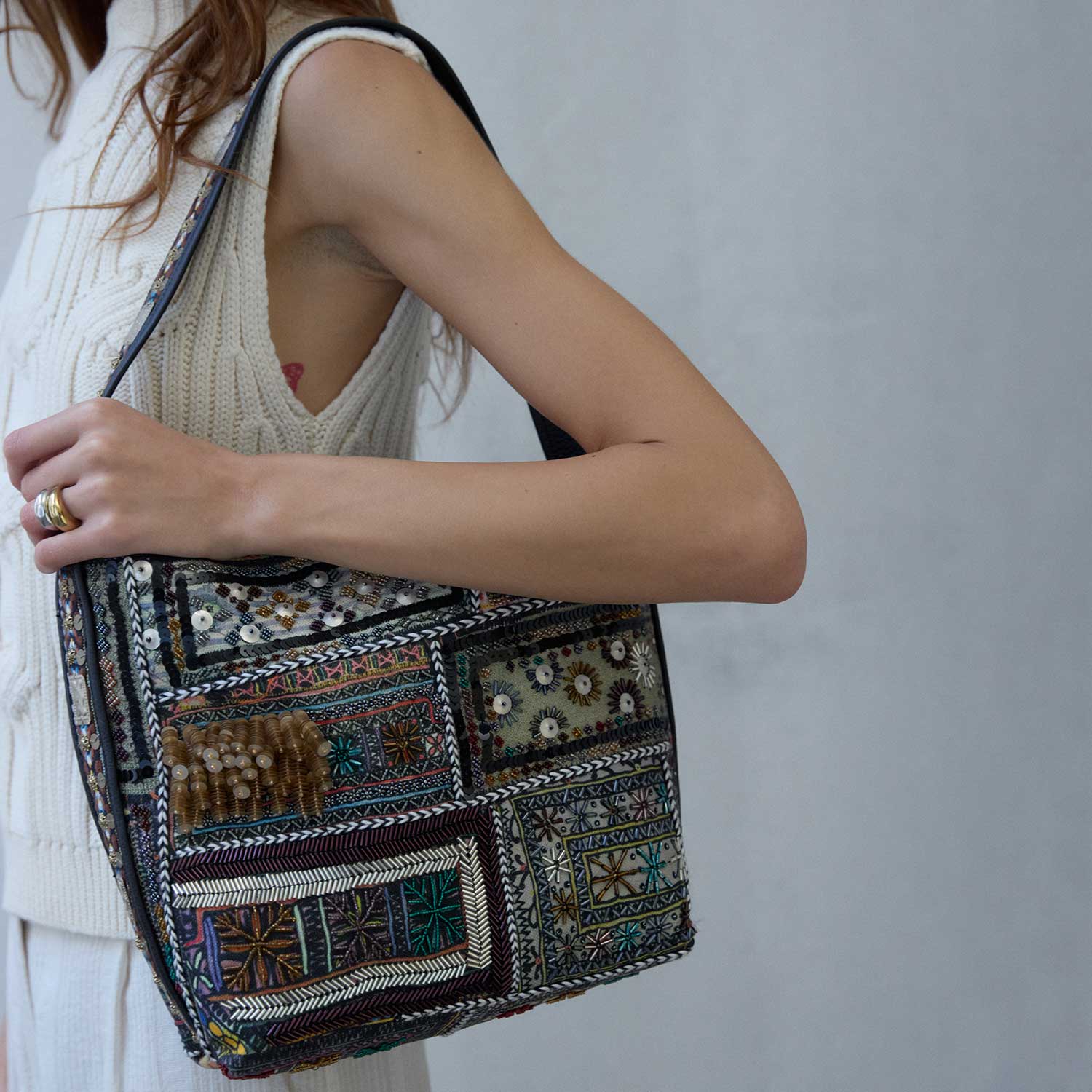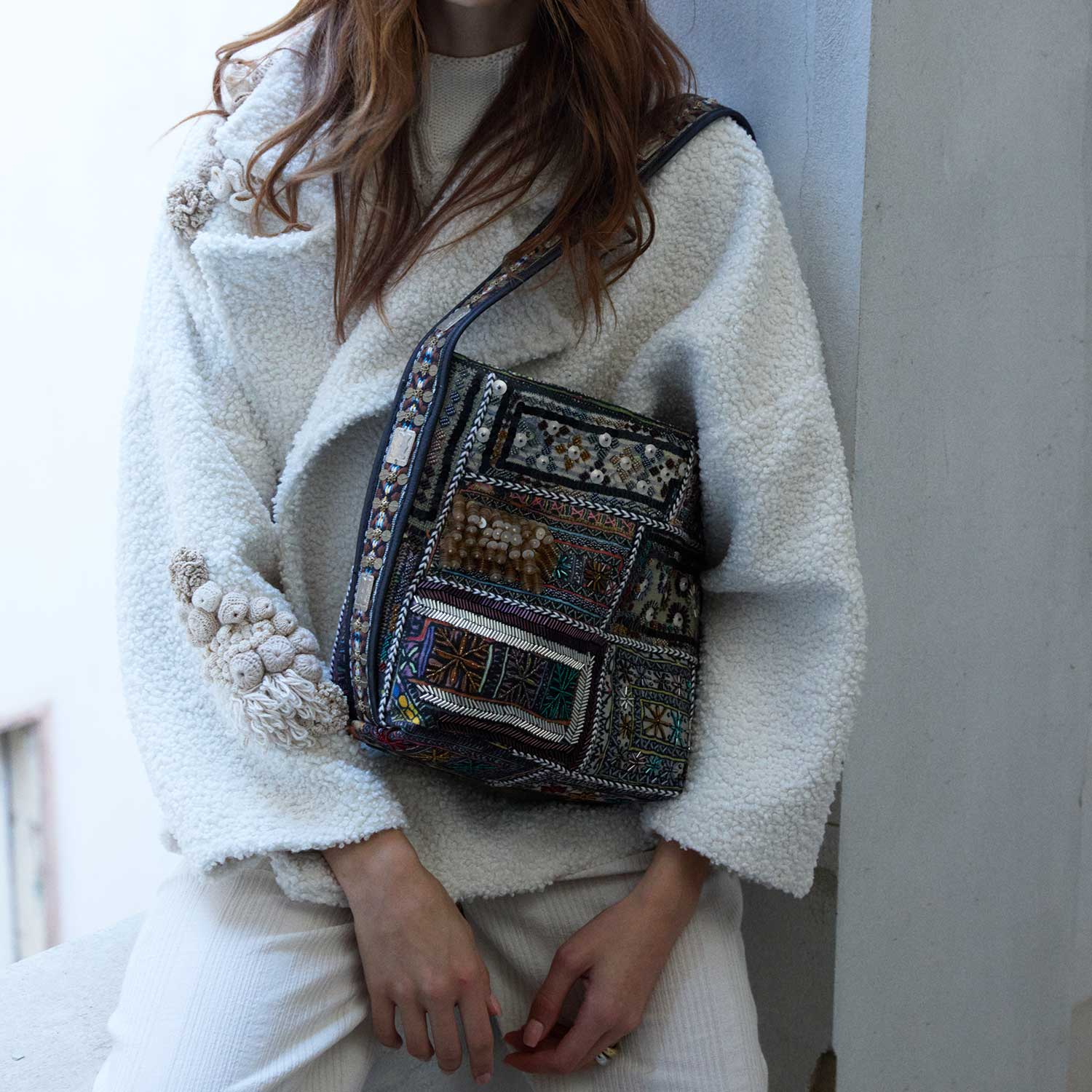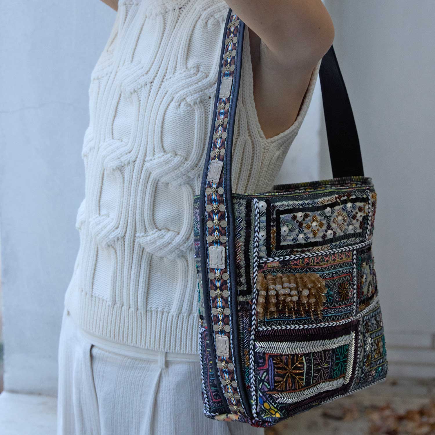 • Store your bag in the provided cotton pouch to preserve the quality of the beads and handcrafted details.