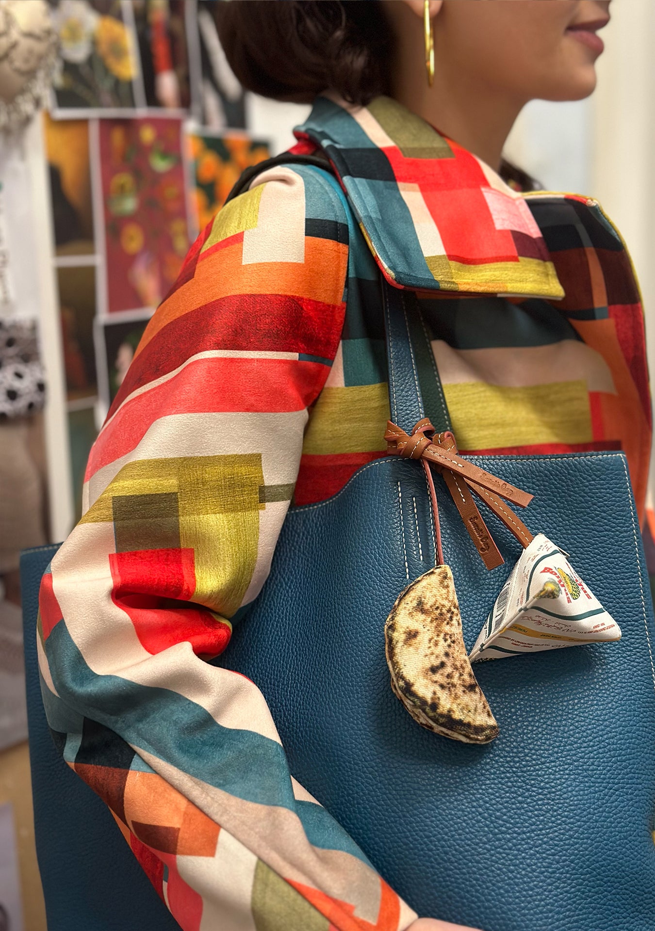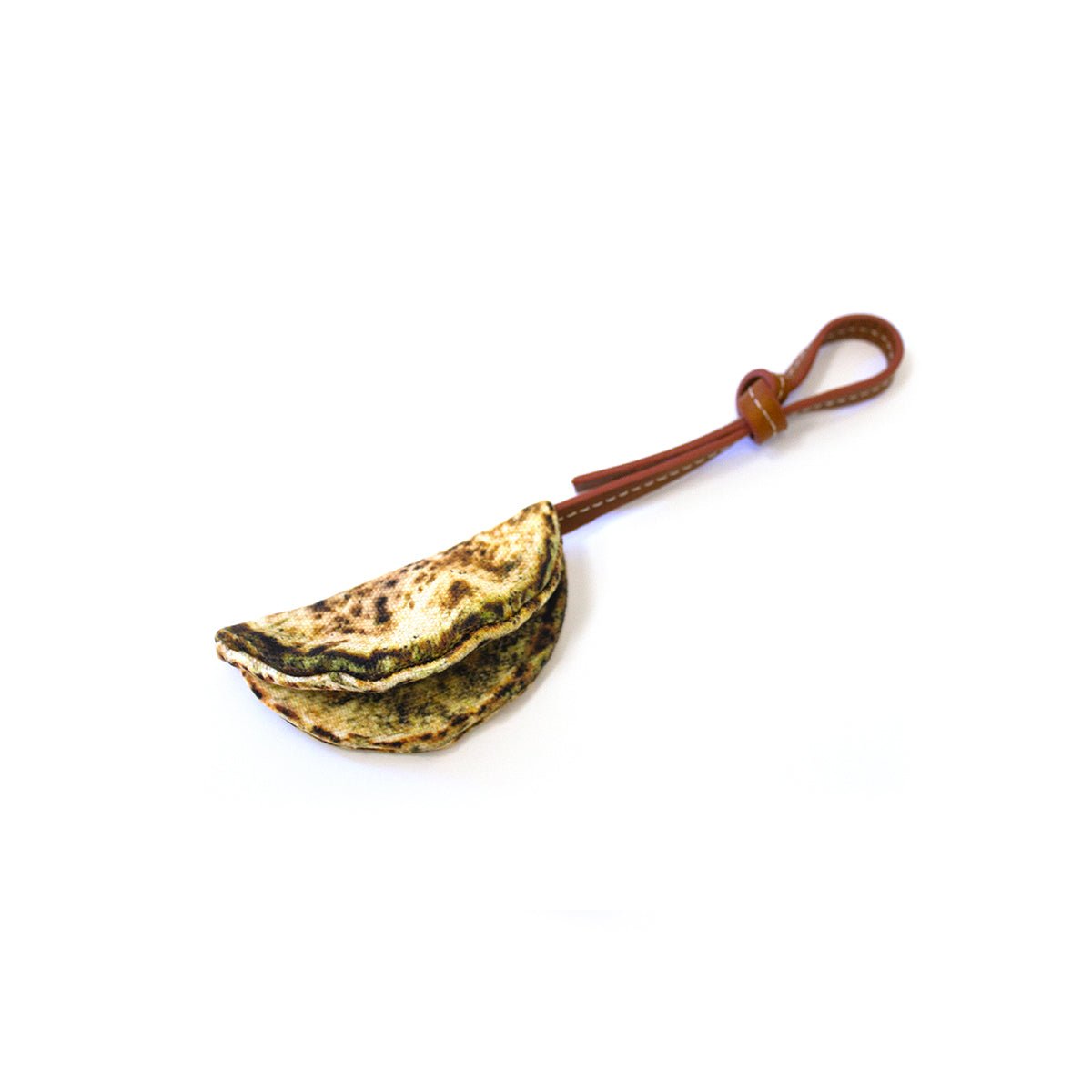 Inspired by the beloved Lebanese Manoosheh, this bag charm by Sarah's Bag is a delightful nod to tradition with its hyper-realistic design. Complete with a leather strap to hang on your bag, it’s a playful and unique accessory that adds a touch of character to your look. Perfect for layering with other charms!
